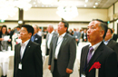 また、懇親会に先んじて行われた総会において応援団のOBである阪下一仁氏に対し、長年同窓会懇親会に近大節の演舞を壇上で披露するという重責を果たしてきた功績を称え、参与に委嘱した事をご報告させて頂きます。